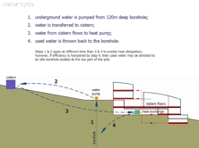 120m-deep borehole; the water is pumped to a 30m3