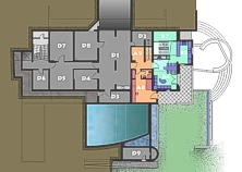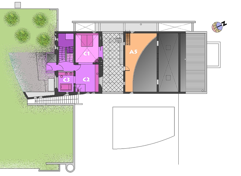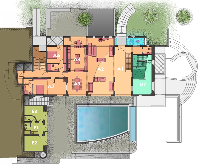 arranged on 5 stepped levels following the slope. An
