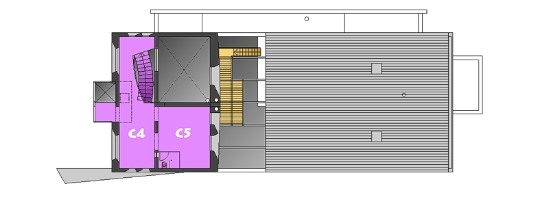 shaft at the south elevation acts as a sunspace that adds to