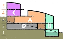 in 3 main sections (A, B, C) plus one for utilities (D),